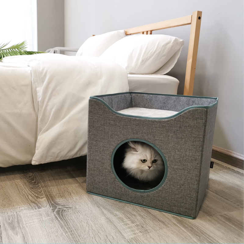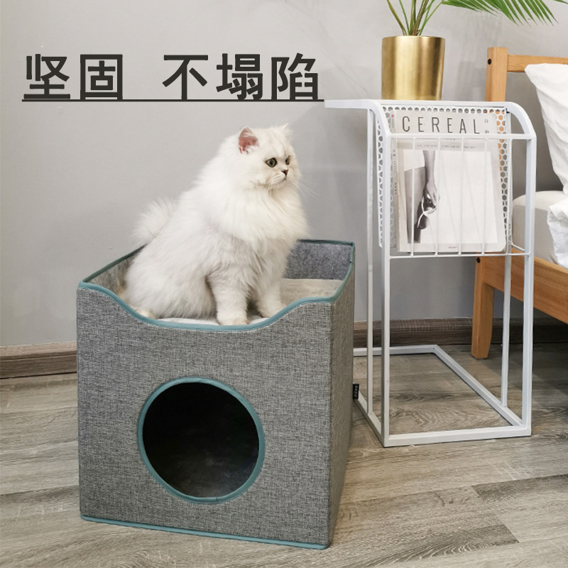 zeze大号猫窝半封闭式舒适可折叠拆洗猫屋双层四季通用耐脏易清理
