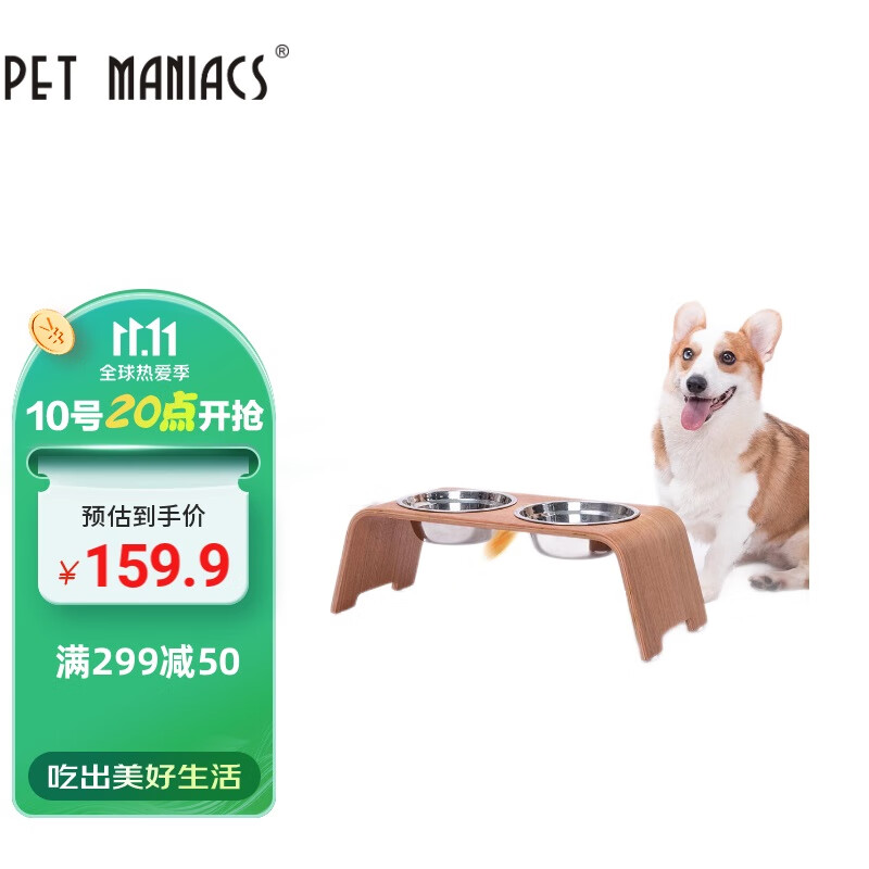 Pet Maniacs 宠物用品狗碗狗盆狗食盆宠物碗中型犬不锈钢双碗防滑大号