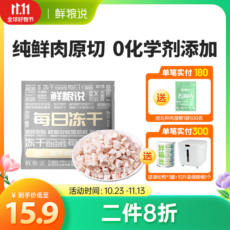 鲜粮说鲜粮说每日冻干猫粮全阶段幼成猫宠物零食增肥发腮营养冻干60g 鸡肉粒 60g
