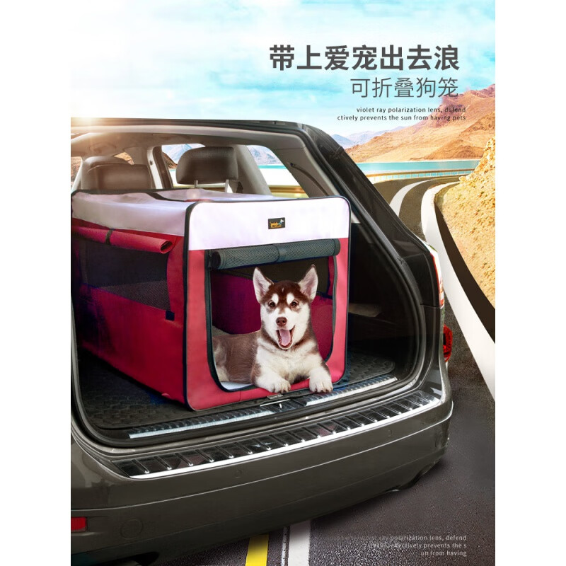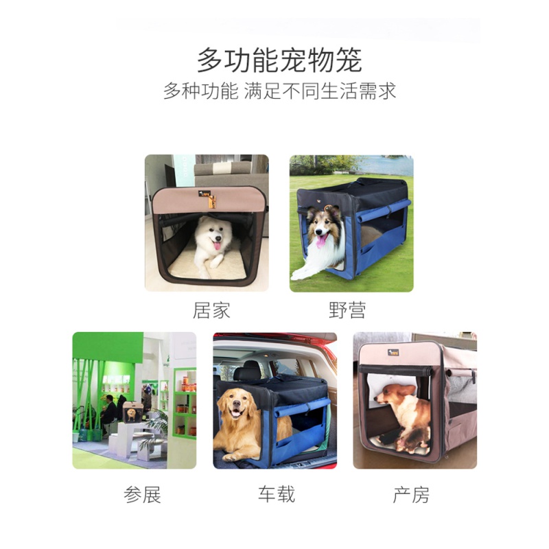 优贝卡狗笼可折叠封闭式大型犬金毛 车载狗窝 狗帐篷冬季外出便携 蓝色 L-70*52*52cm(适合中大型犬)