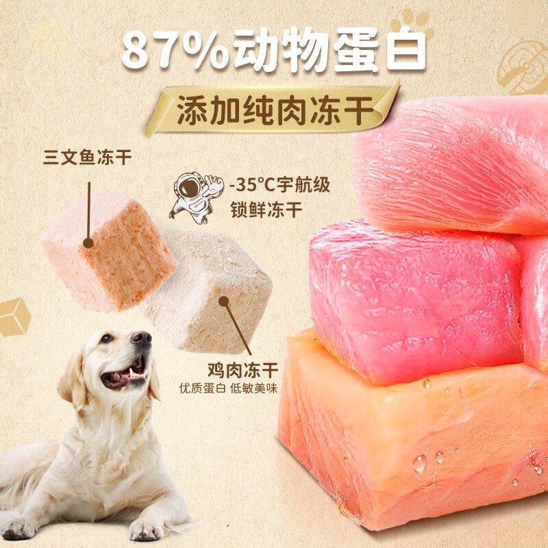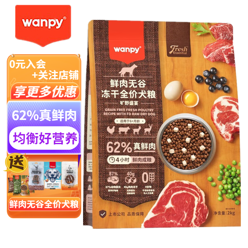 顽皮(Wanpy)无谷鲜肉冻干狗粮幼犬泰迪成犬金毛全价狗粮全期通用型犬粮 62%鲜肉旷野盛宴2kg