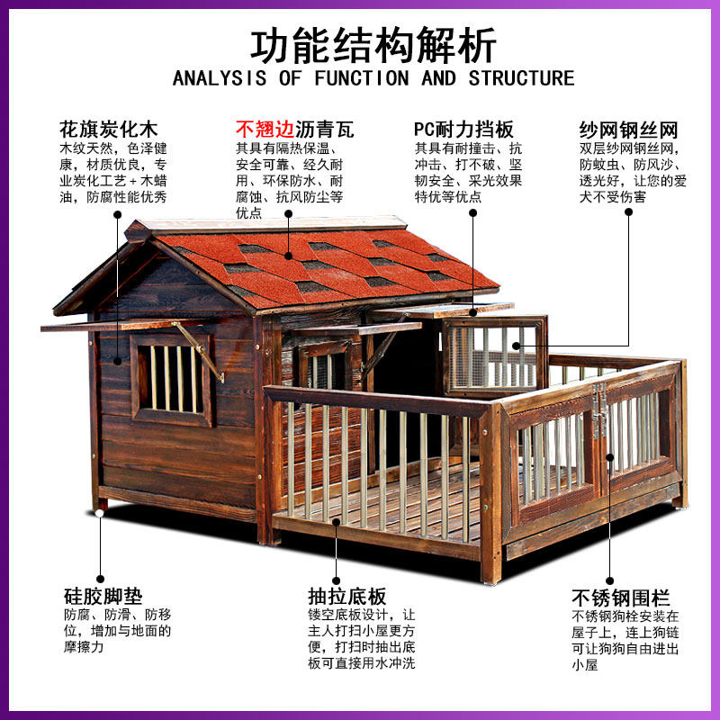 防水防雨户外实木狗屋狗房子大型犬封闭式木质狗别墅可拆洗狗笼子