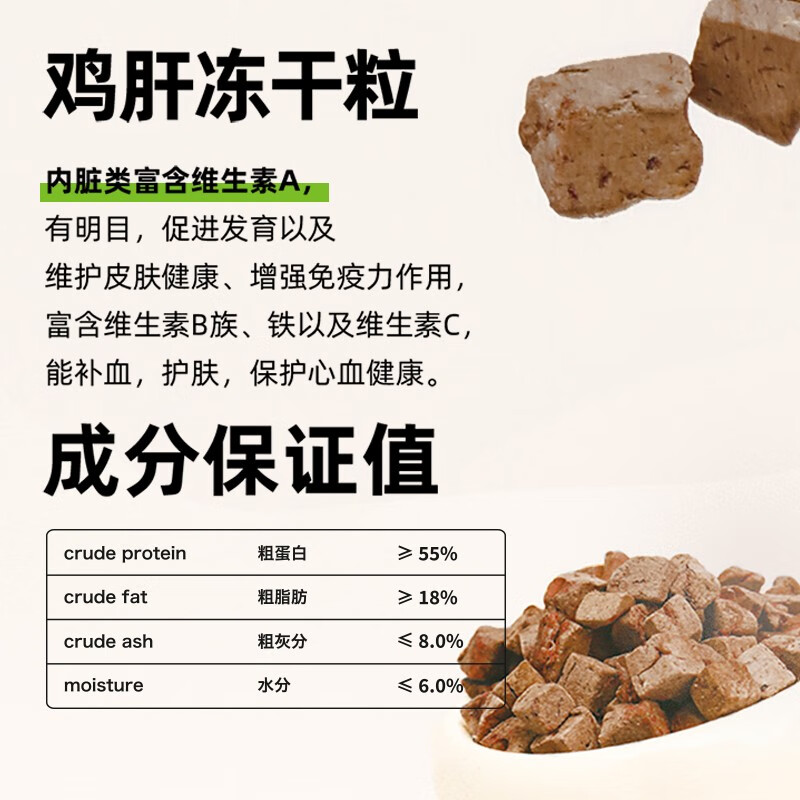 鸡肝冻干冒冒脚脚猫零食原切零淀粉零添加零防腐剂100g增强抵抗力补血低敏性强适口性佳营养高 鸡肉 鸡肝冻干粒