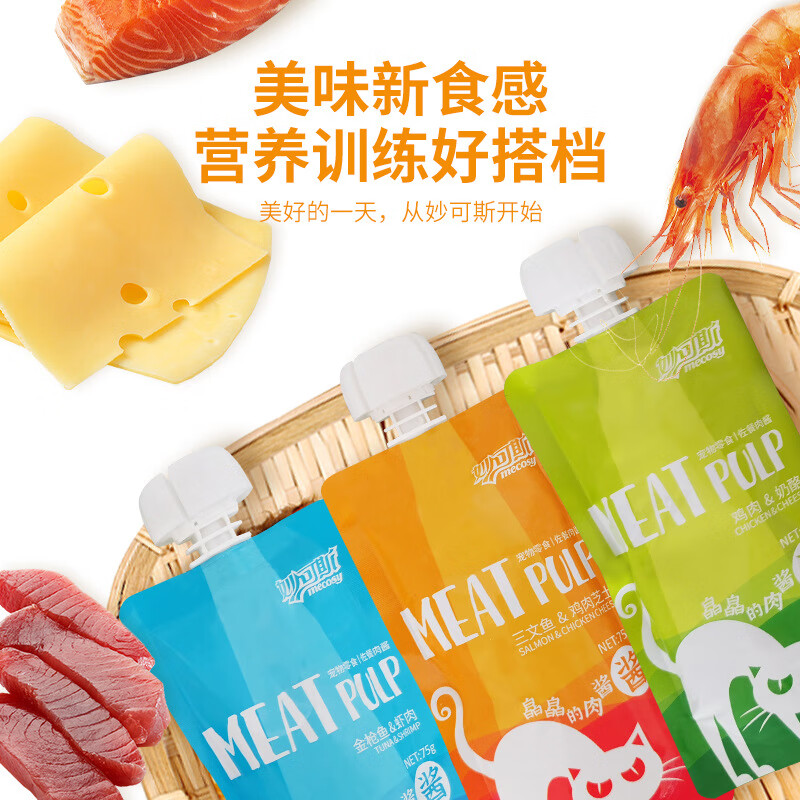 猫咪湿粮包补充营养吸嘴式猫妙封包补水发腮肉酱酱肉泥猫条妙鲜鱼肉包 鸡肉奶酪75g 3袋