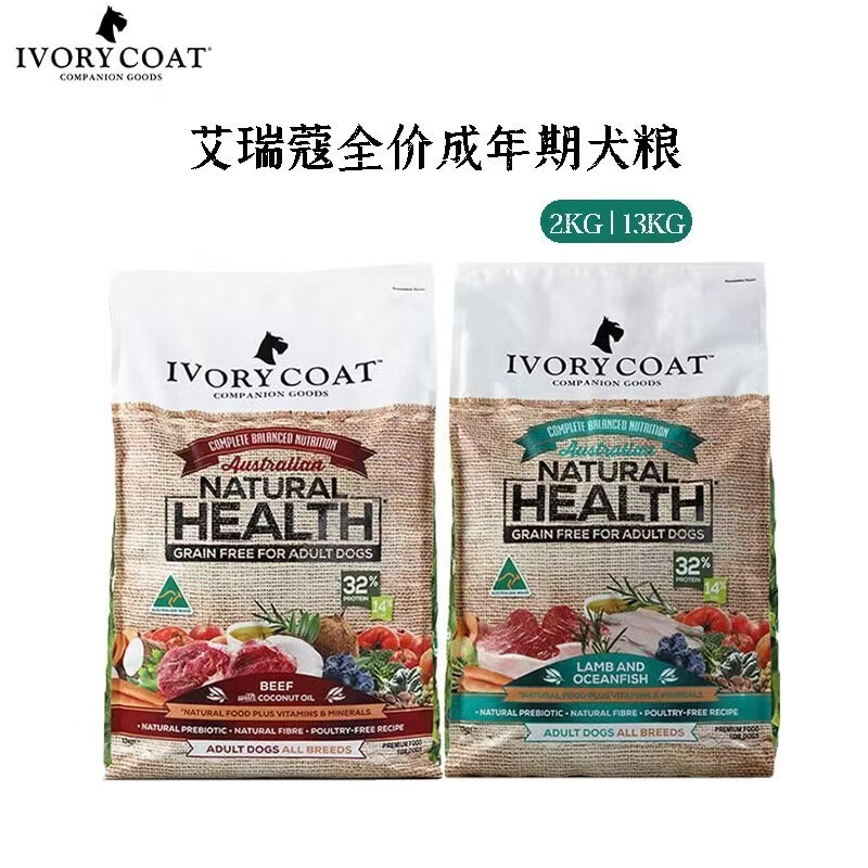 艾瑞蔻(IVORY COAT)澳洲进口 IvoryCoat艾瑞寇无谷牛羊肉椰子油深海鱼护肤亮毛犬粮 牛肉椰子油配方13kg 好日期 现货发