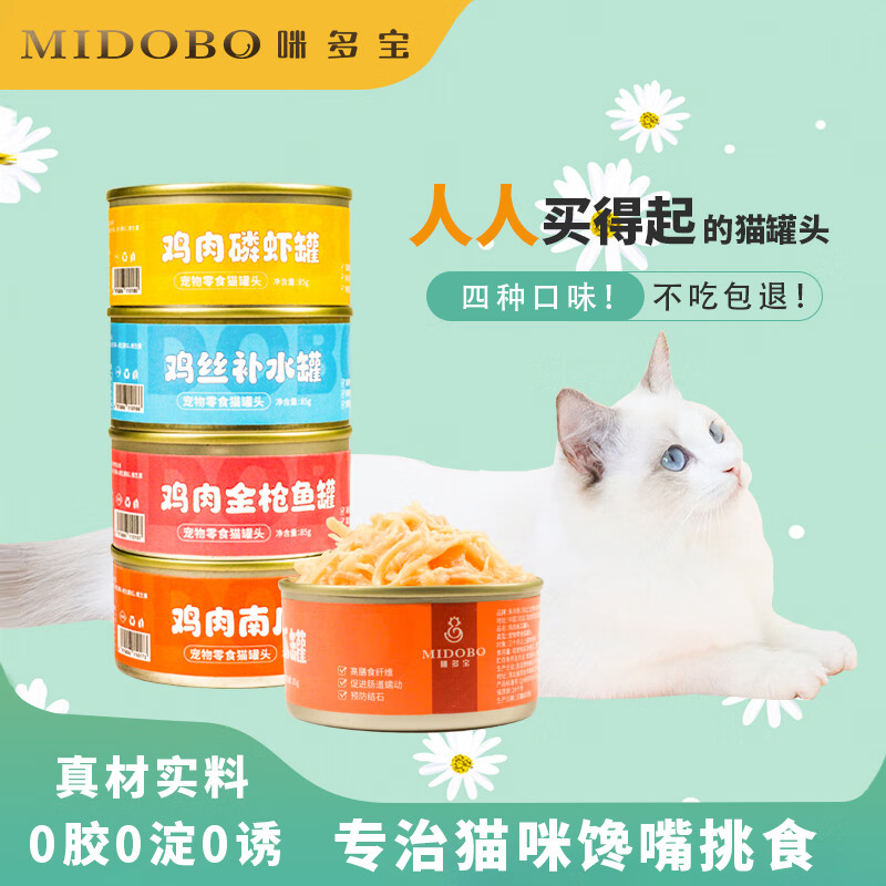 咪多宝(MIDOBO)猫罐头猫咪零食汤罐成猫幼猫鱼肉湿粮增肥发腮 鸡肉磷虾 12罐