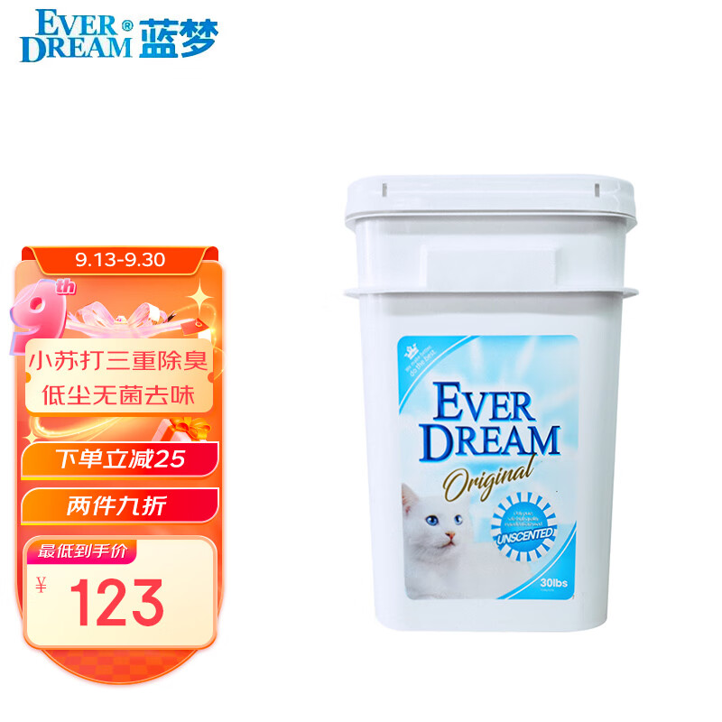 蓝梦(Ever Dream)天然钠基矿砂矿石猫砂活性炭除臭低尘破碎混合膨润土猫沙 天然钠基矿物-13.65kg(桶装)