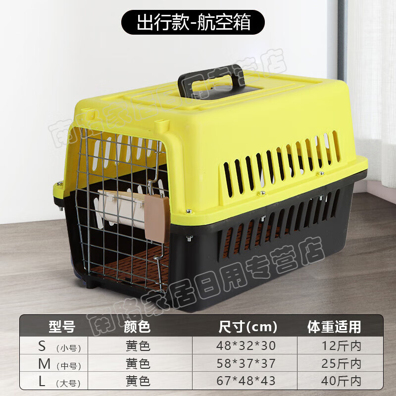 波奇多 猫咪航空箱宠物托运箱猫笼狗笼子小中型犬外出便携猫包装狗箱 [出行款]黄黑贈隔尿板 挂碗 /M-中号航空箱[20斤以内犬猫]