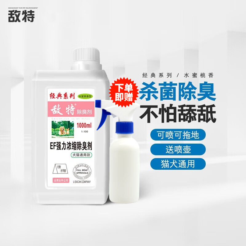 敌特宠物除臭剂 狗狗消毒水剂猫尿除味剂猫砂尿骚便臭室内去味用品 水蜜桃1000ml
