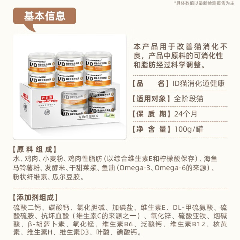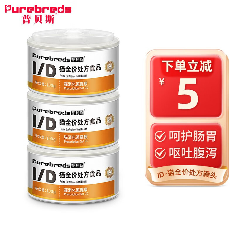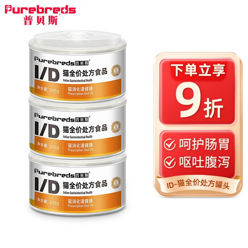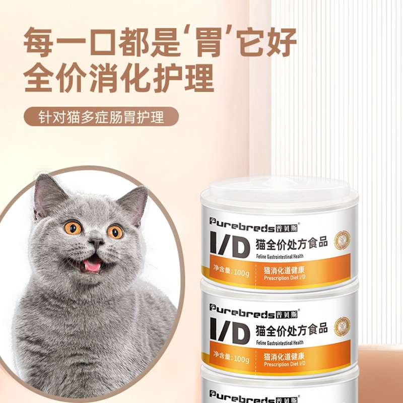 普贝斯猫咪术后处方罐头猫产后手术狗怀孕产后绝育贫血犬瘟康复湿粮流食 ID猫消化道健康(3罐*100g)