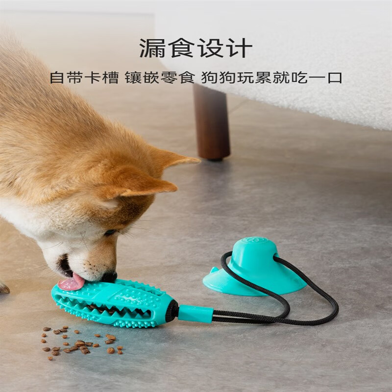 漏食玩具球狗狗磨牙神器吸盘拉力宠物拔河耐咬球大型中型犬解闷 橄榄球款【湖蓝色】