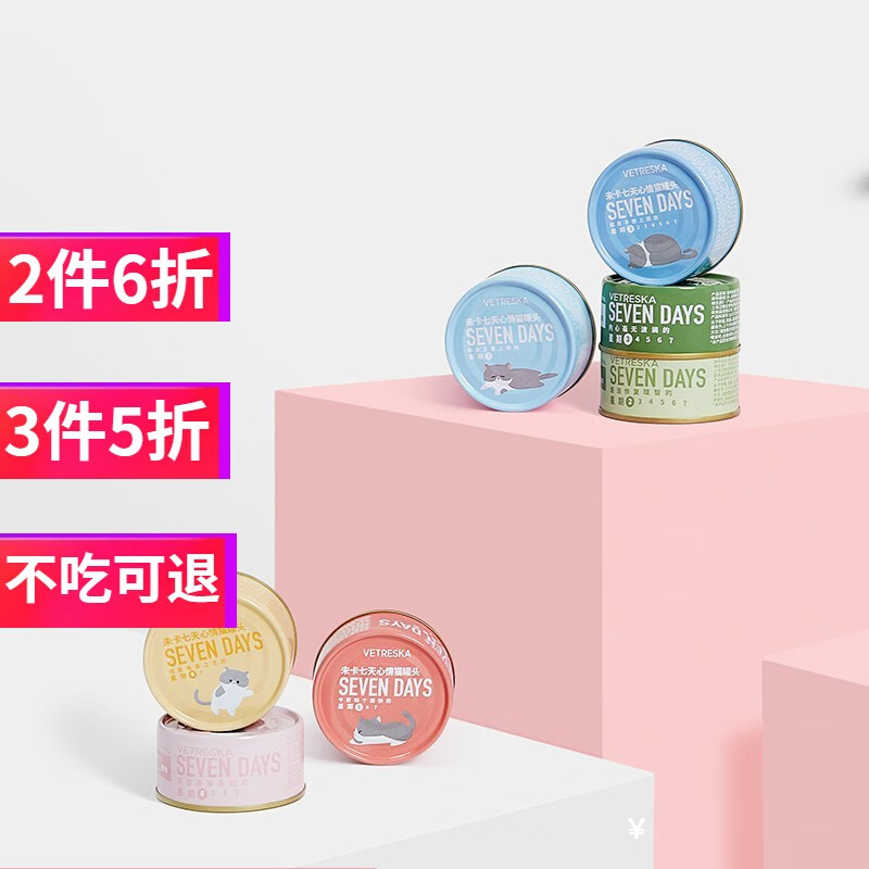 未卡7天心情罐80g/罐 宠物猫咪肉罐头浓汤罐头 成猫幼猫产后猫咪湿粮零食 7天星期罐(80g*7罐)