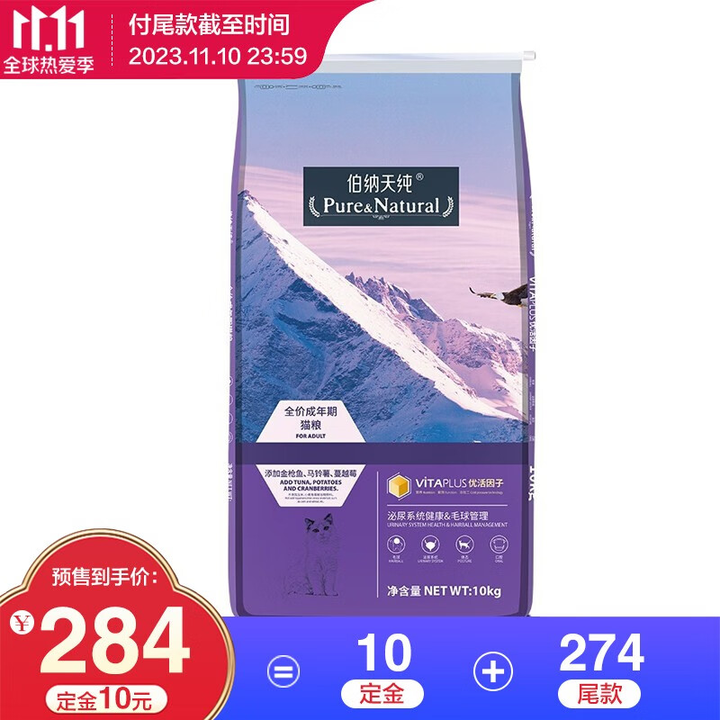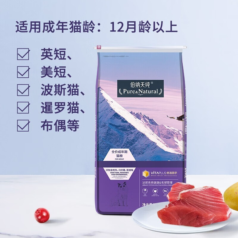 伯纳天纯 猫粮成猫猫粮优化体态 博纳天纯猫粮 成猫 10kg