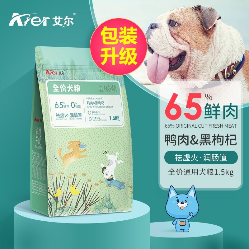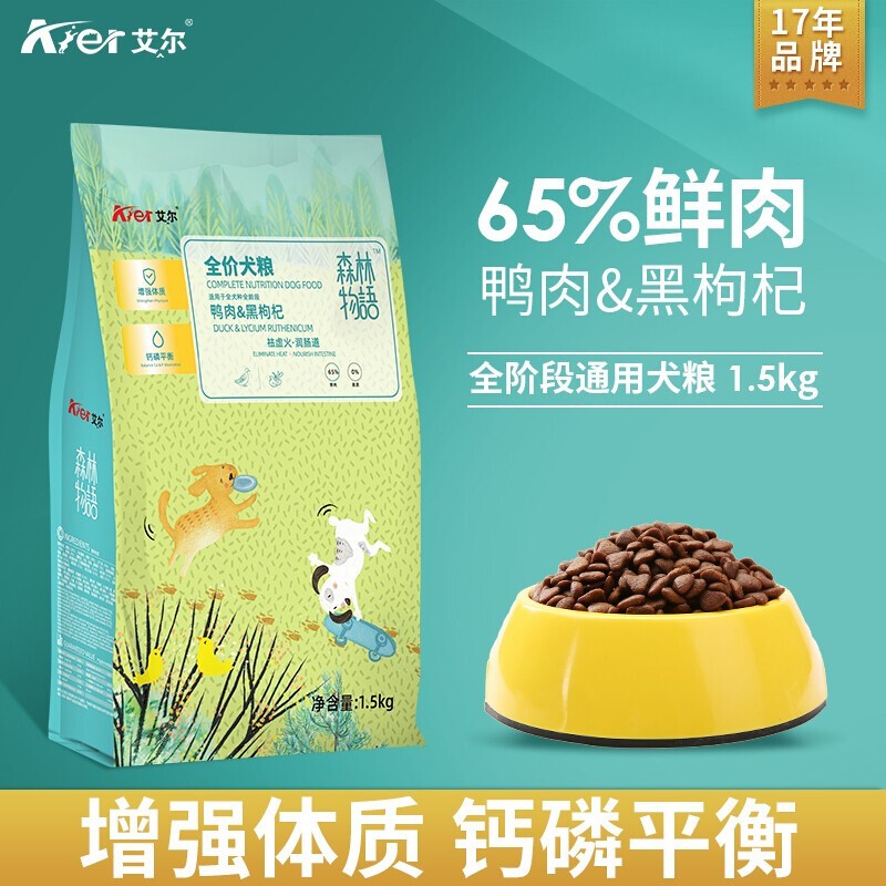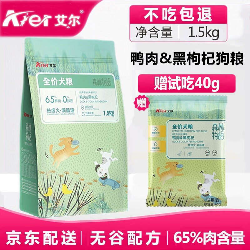 艾尔森林物语无谷鲜肉狗粮 65%鲜肉 无谷低敏0麸质全价全期狗粮 鸭肉黑枸杞全期1.5kg