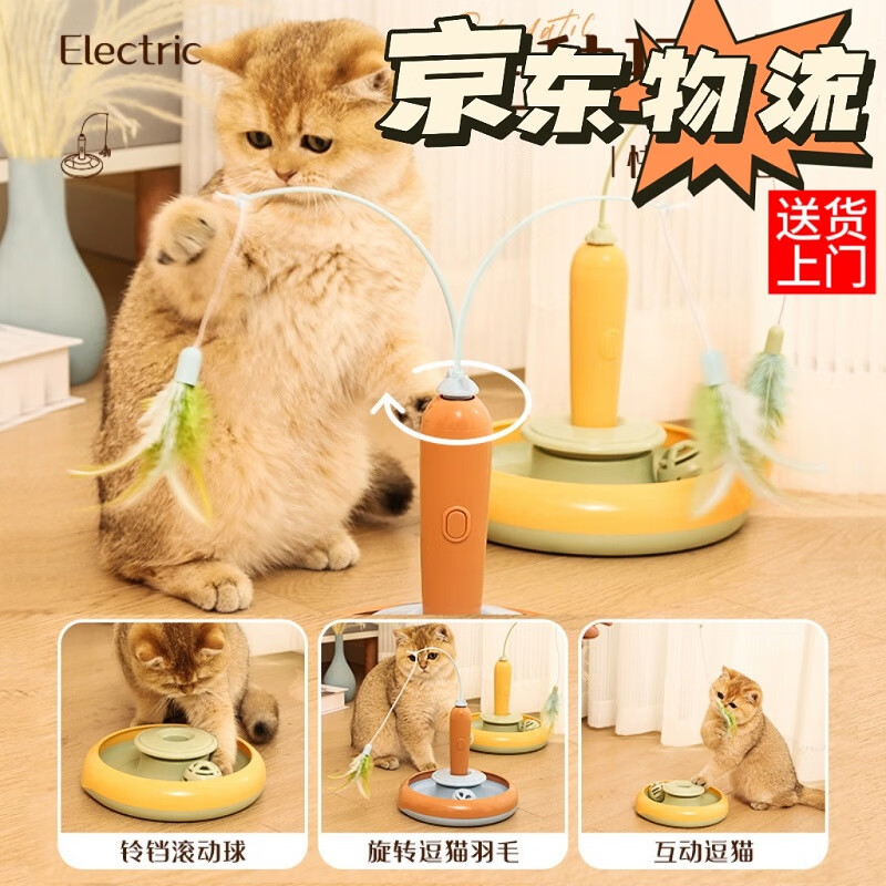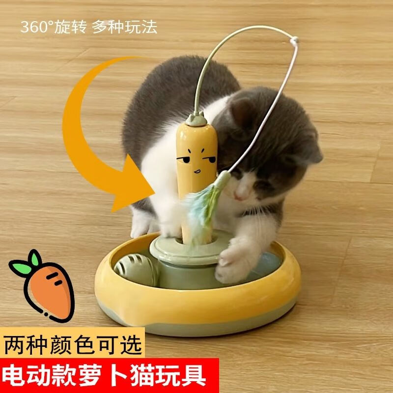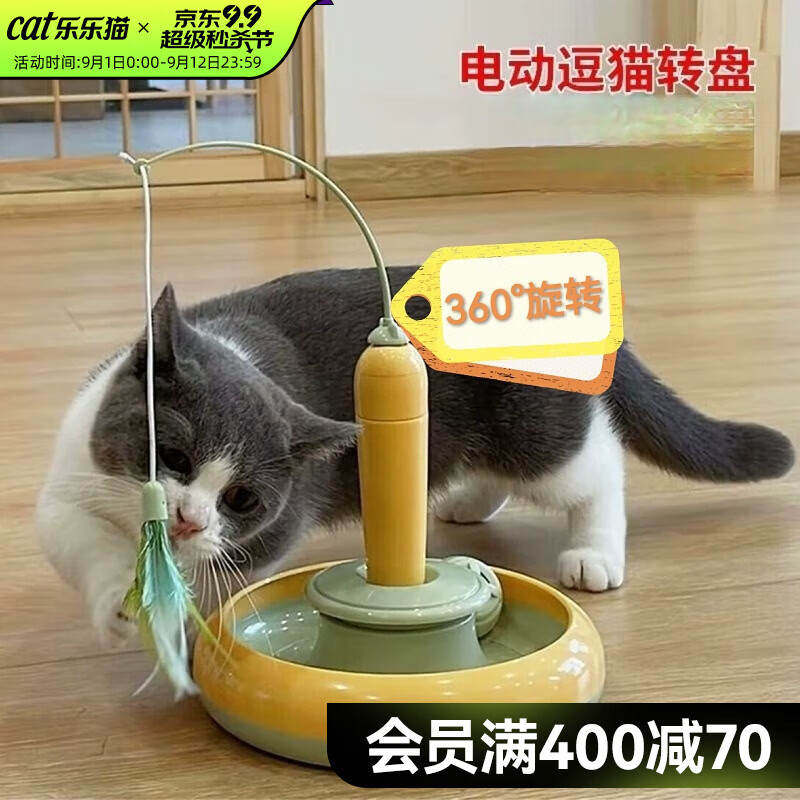 华元宠具(hoopet)猫玩具电动逗猫棒不插电智能猫转盘铃铛球逗猫神器自嗨解闷羽毛替换头猫咪用品大全 【90%选择】电动-智能-不插电逗猫棒(黄绿色)