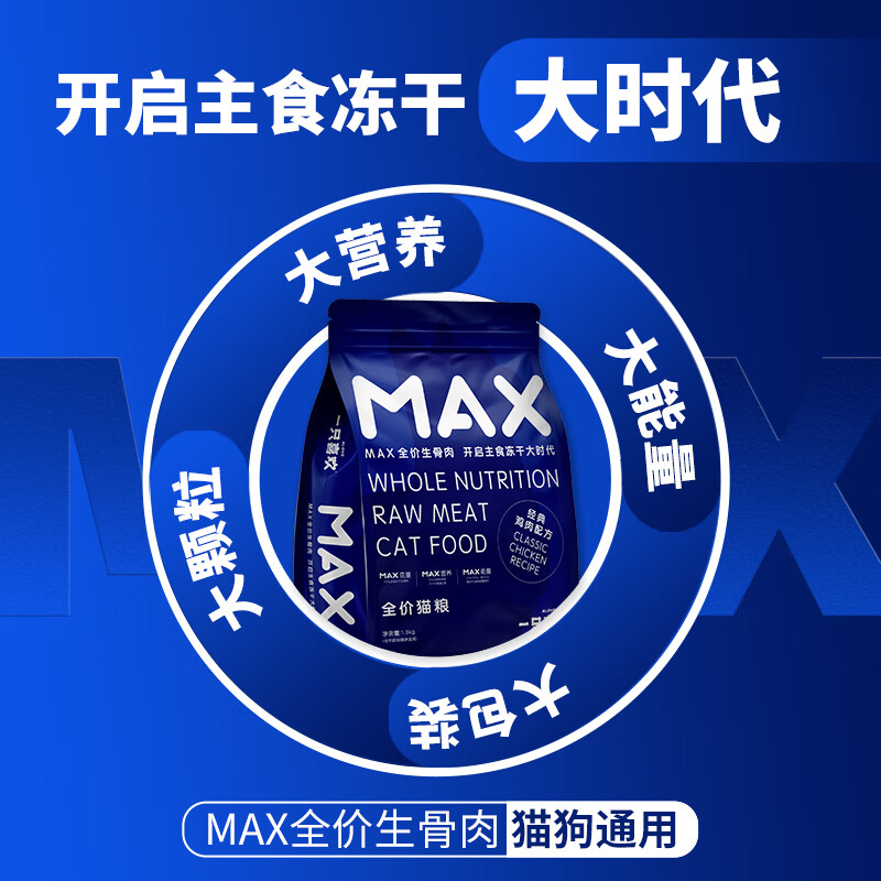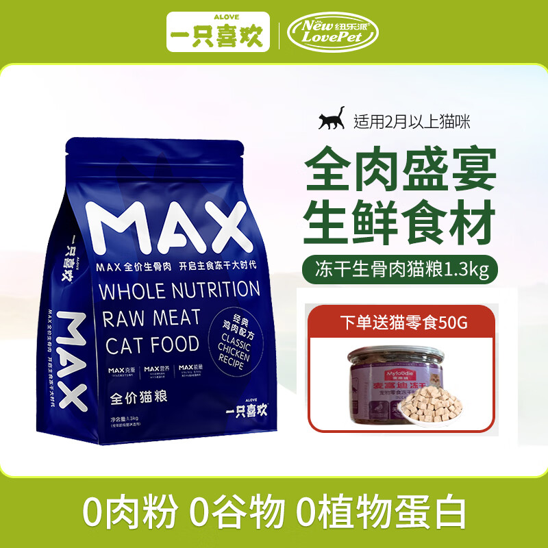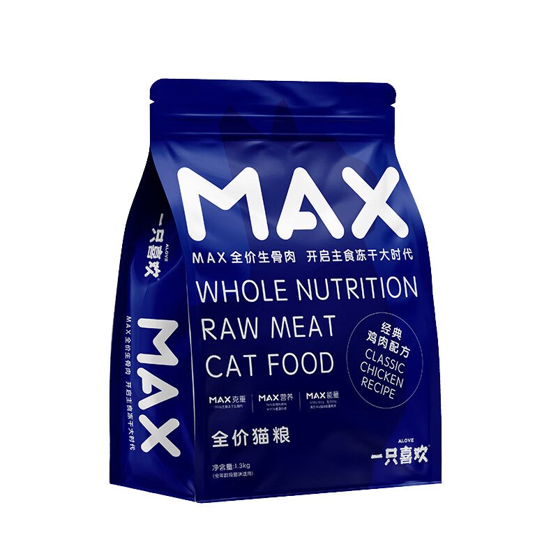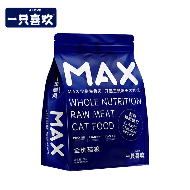 一只喜欢MAX冻干猫粮 成幼猫通用鸡肉生骨肉主食冻干粮 MAX鸡肉配方1.3kg(猫用)