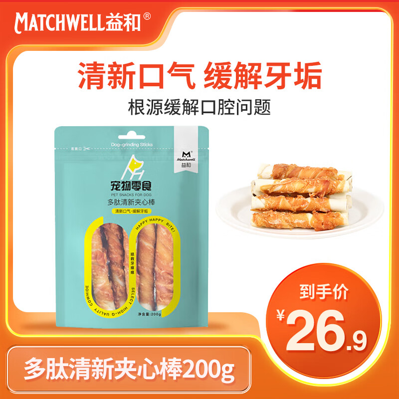 益和(MATCHWELL)磨牙棒狗狗零食中小型犬幼犬洁齿专用牛皮一米棒耐咬泰迪柯基通用 【清新夹心棒】10根中小型犬适用