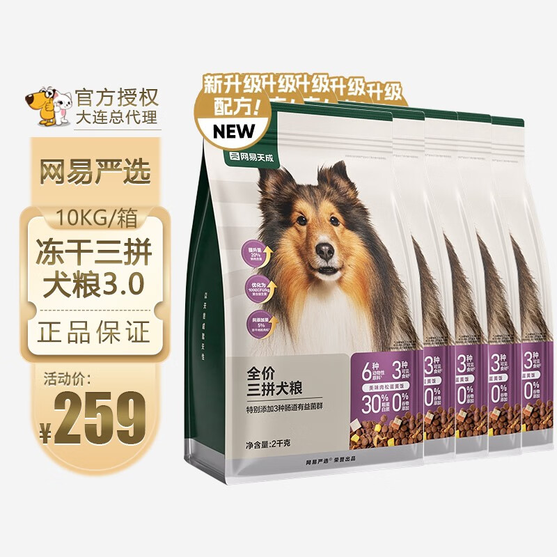 网易天成网易天成三拼犬粮鲜肉冻干狗粮成犬幼犬小型大型犬小狗专用粮 三拼3.0 2kg*5 全犬期 全犬种