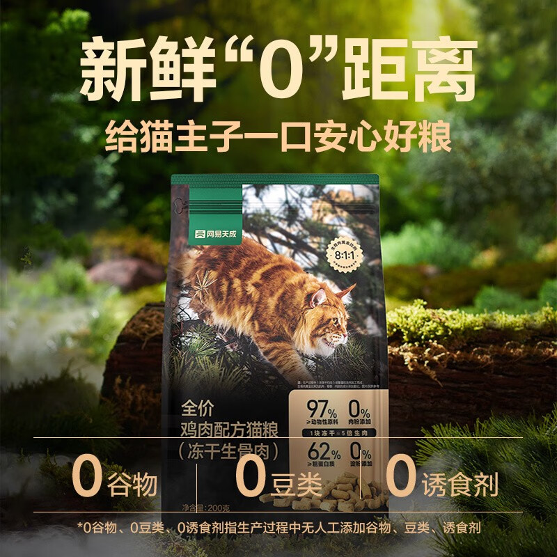 霆特网易天成 冻干生骨肉猫粮居家宠物主粮幼猫成猫冻干粮全阶段无谷 200克/袋