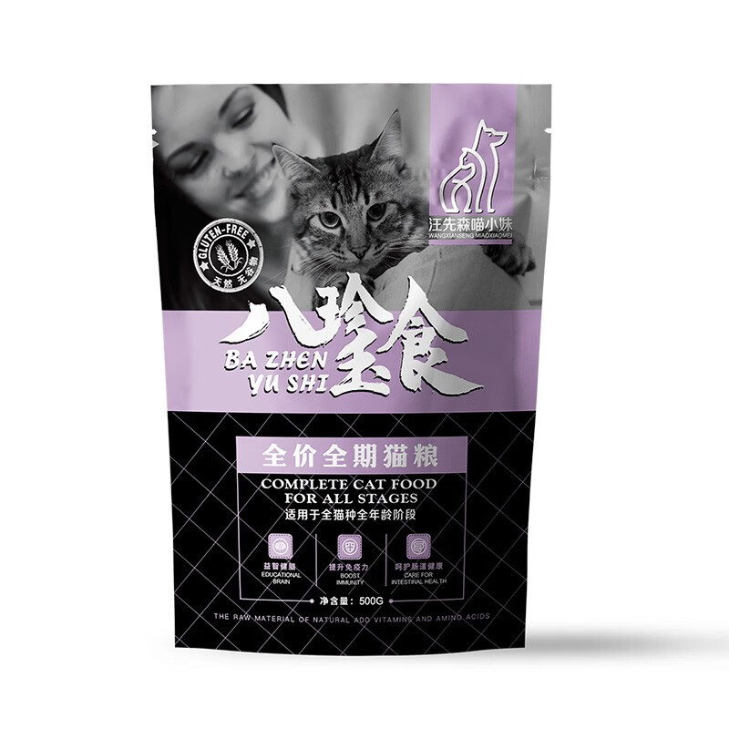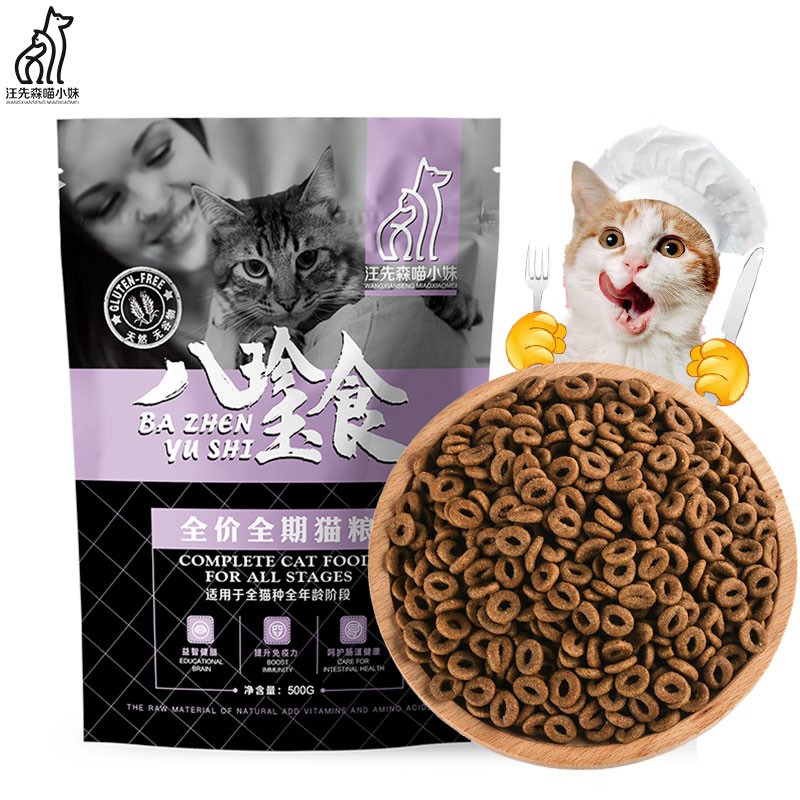 汪先森喵小妹 宠物猫幼猫成猫全猫种通用营养全期猫粮牛肉味 替换粮小袋装500g/袋
