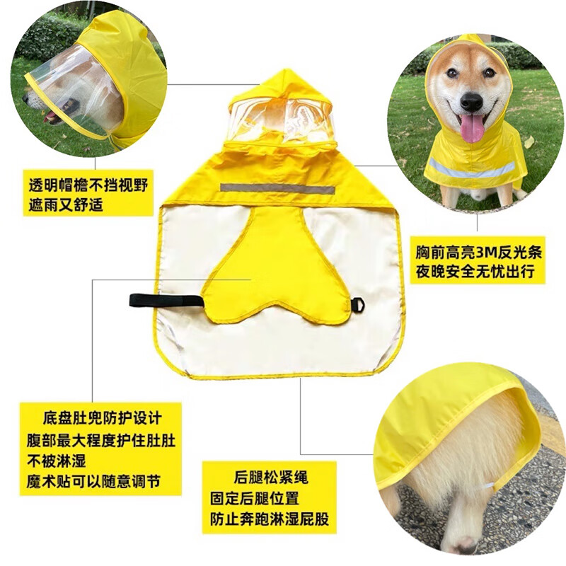 兰叙宠物小狗雨衣泰迪斗篷小型犬中型犬防水衣服遛狗雨披柯基柴犬用品 黄色雨衣 现货秒发 M码(10-15斤)
