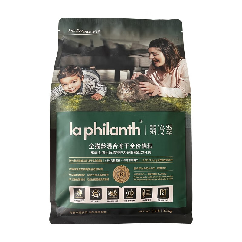 翡冷翠全价猫粮益生菌鸡肉冻干猫粮无谷低敏孕幼猫奶糕粮成猫粮全猫种粮 M18鸡肉全期猫粮1.5kg