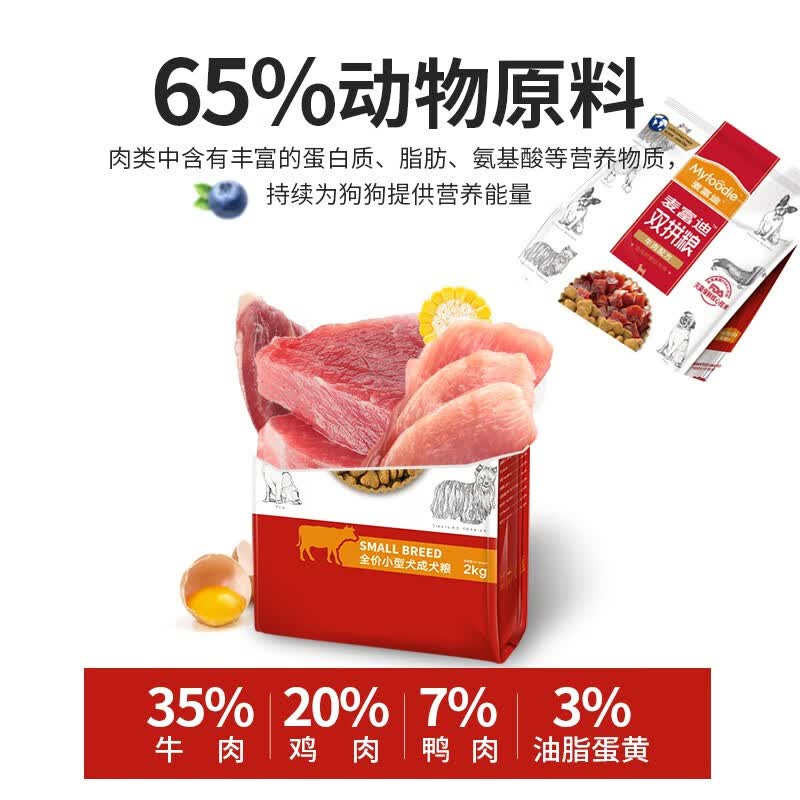 【狗主粮】麦富迪狗粮牛肉双拼天然粮主粮 添加牛肉粒 小型犬成犬粮 小型犬2kg