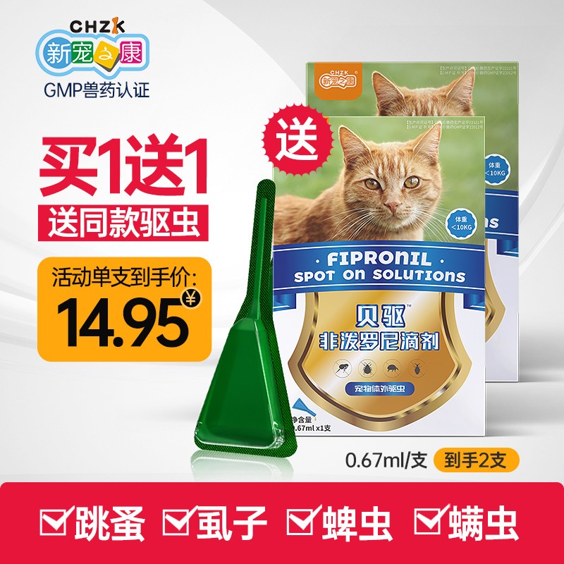 新宠之康 猫咪专用驱虫药猫体内体外同驱非泼罗尼跳蚤螨虫蜱虫虱子肠道线虫蛔虫绦虫猫胃肺线虫吸虫病驱杀 猫咪体外驱虫0.67ml/单支装