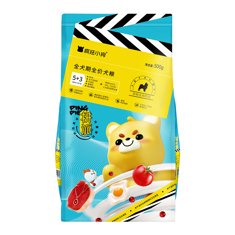 疯狂小狗幼犬成犬狗粮 宠物泰迪贵宾比熊博美金毛萨摩耶全犬种粮 小型犬中大型犬通用粮500g