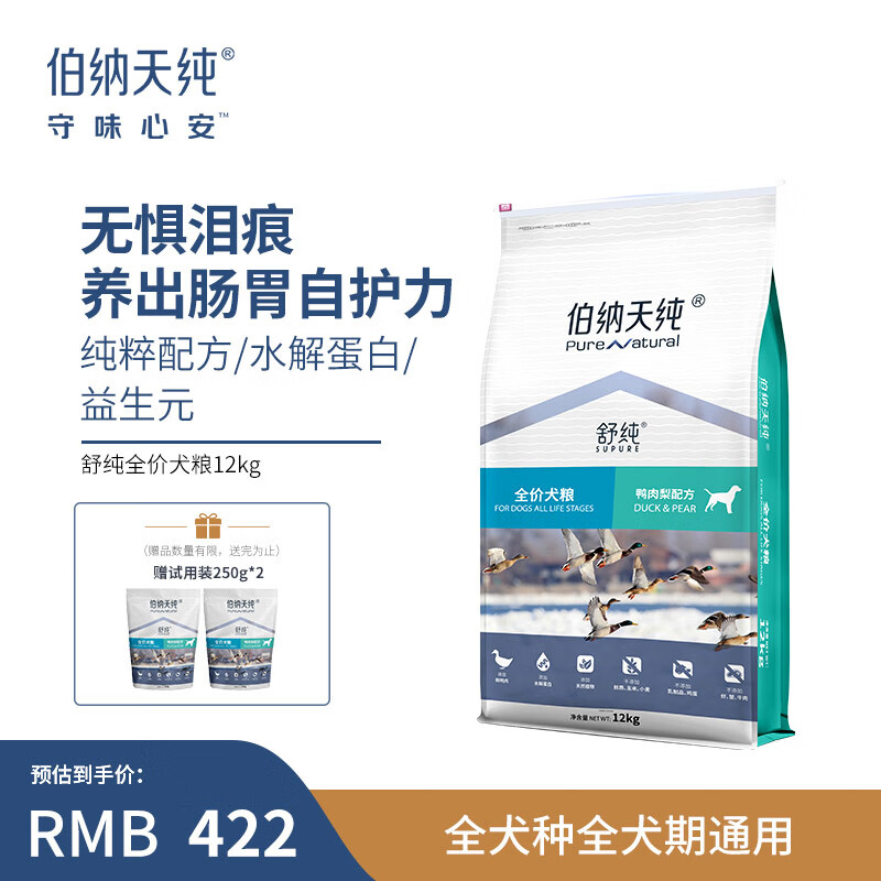 伯纳天纯低敏宠物狗粮成犬幼犬通用舒纯鸭肉配方犬粮泰迪博美主粮 低敏鸭肉味犬粮12kg