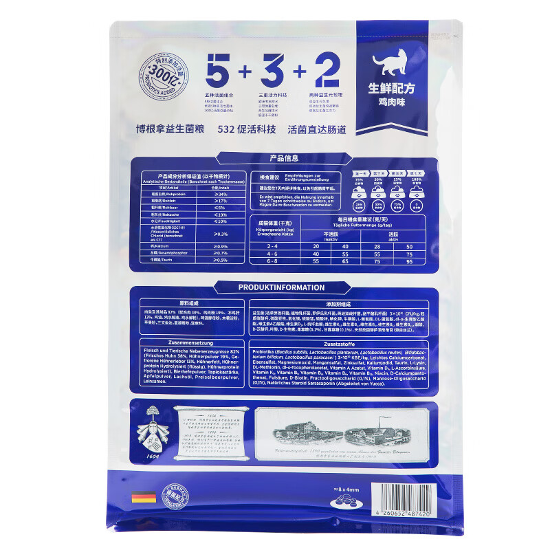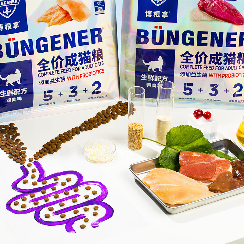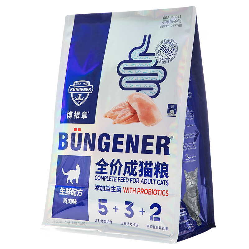 博根拿Büngener 德国品牌 全价成猫粮无谷鲜肉粮5kg(1kg*5)生鲜配方鸡肉味添加300亿益生菌 呵护肠道健康