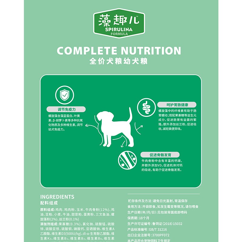 麦富迪宠物狗粮 藻趣儿全价全犬牛肉味通用狗粮(日期新鲜包退换) 麦富迪藻趣儿(更高营养)全价幼犬粮2kg