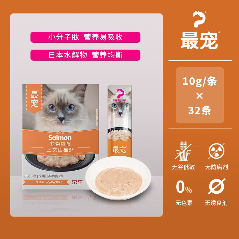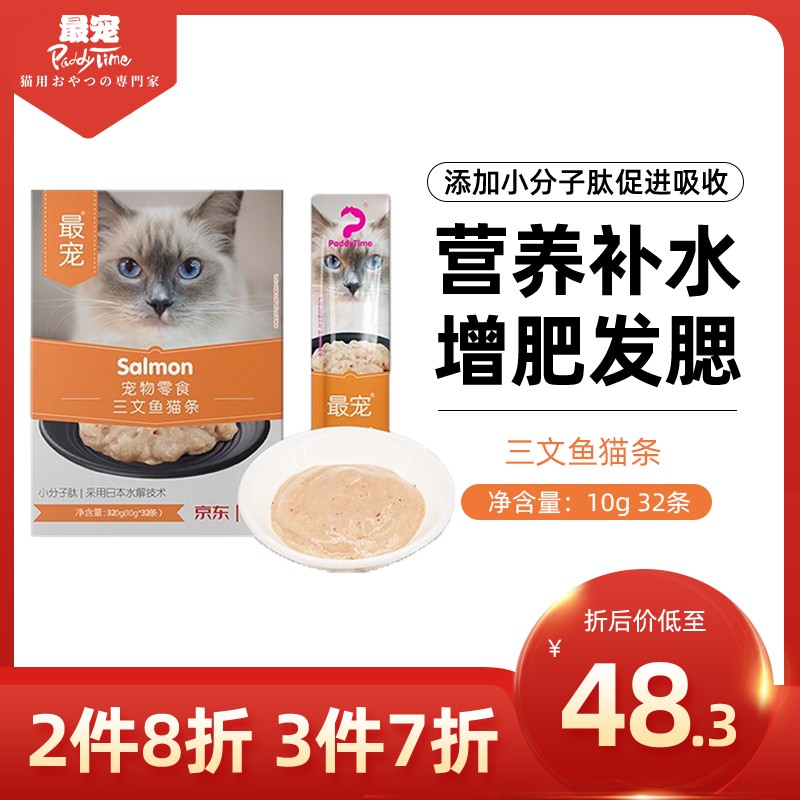 澳洲品牌 最宠(Paddy Time)猫条猫零食猫咪湿粮幼猫猫条发腮营养流质食品猫罐头增肥肉泥猫粮 三文鱼猫条10g*32