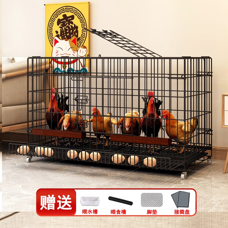 邦可臣鸡笼子家用养鸡笼特大号自动清粪折叠养殖笼鸡舍铁丝网鸭猫狗笼 蛋托款套餐 加粗100*60*70【适合4-6只】