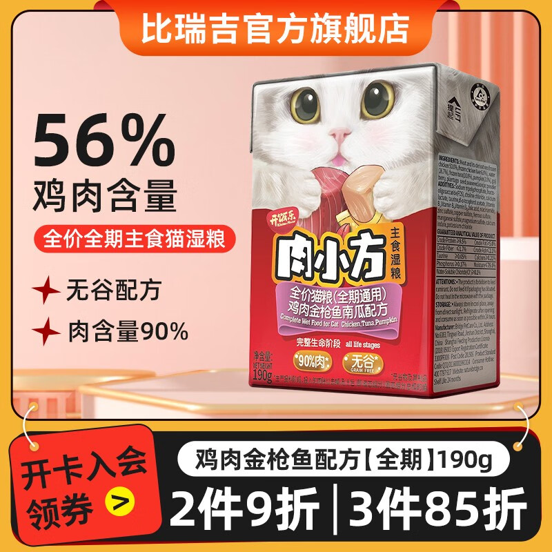 比瑞吉开饭乐肉小方宠物猫粮全价全期湿粮猫零食罐鸡肉金枪鱼肉含量90% 【9成肉量】鸡肉金枪鱼190g