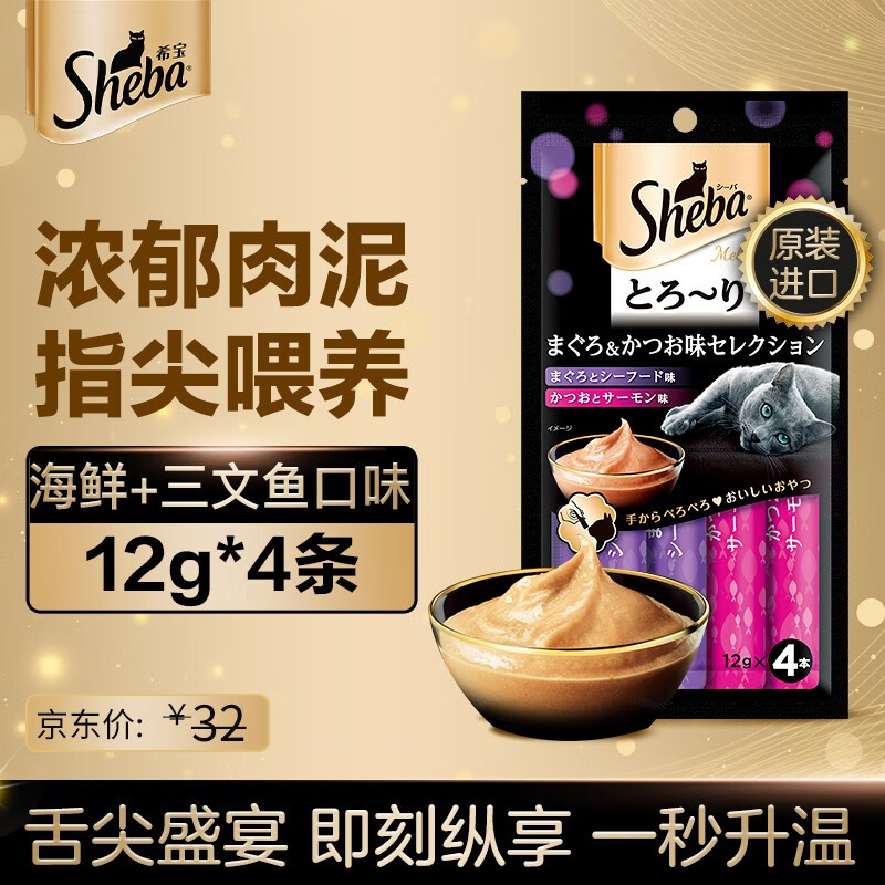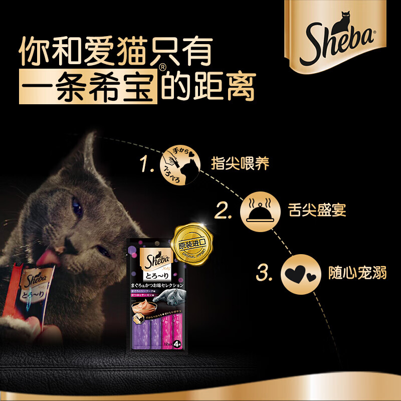 希宝(Sheba)猫零食成猫猫条原装进口情感互动 海鲜 三文鱼12g*4条