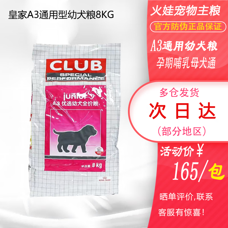 皇家狗粮A3幼犬狗粮 全犬种通用粮2-12月龄犬怀孕及哺乳期母犬 8kg(16斤) A3幼犬粮日期新鲜送货上门