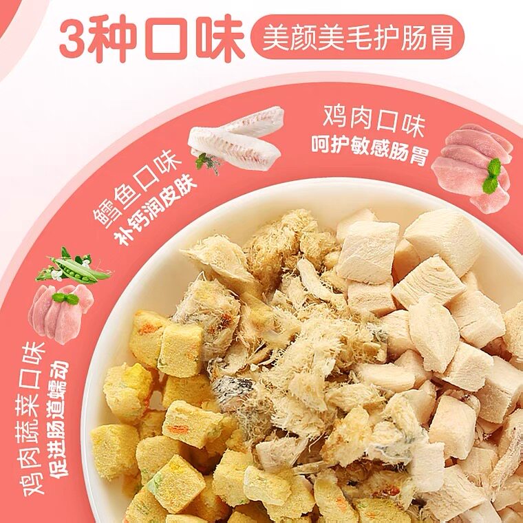 顽皮宠物零食冻干猫咪鸡肉鸡胸肉鳕鱼营养增肥狗狗肉干粒60g*1袋