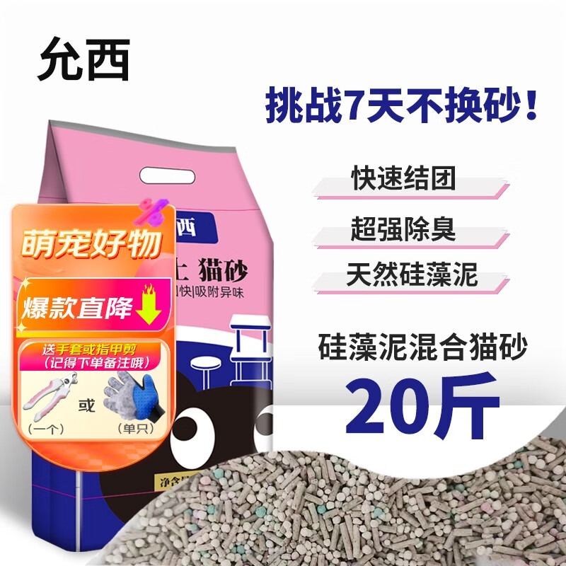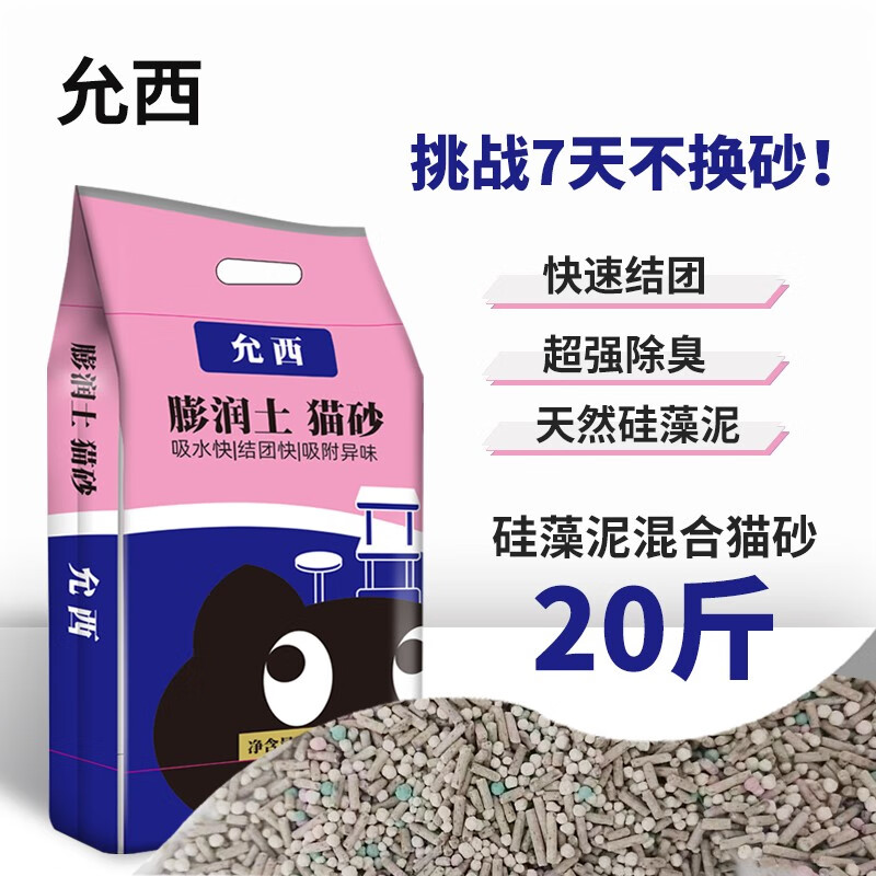 允西猫砂膨润土20斤除臭无尘十公斤结团大包装小颗粒10kg 硅藻泥混合猫砂10公斤