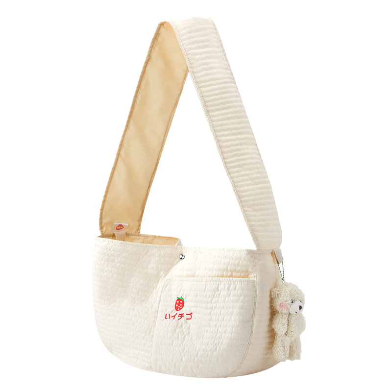 惠芸阙 宠物外出包小狗包宠物背包帆布单肩猫包斜跨出门便携猫咪狗狗用 咖啡色(无小熊) 加大号(适用体重18斤以内)