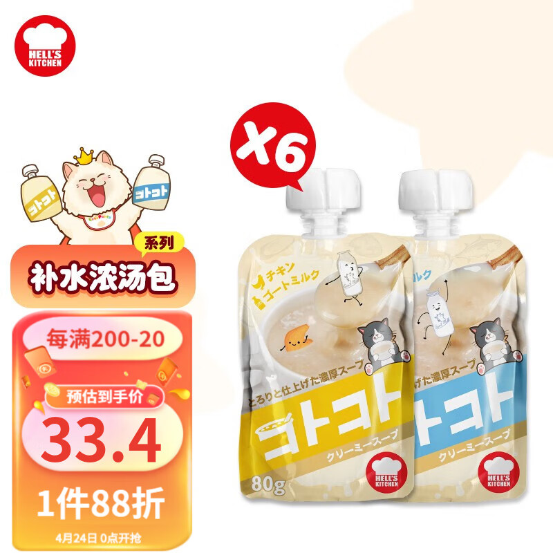 地狱厨房(Hell's Kitchen)猫零食猫咪湿粮浓汤包营养补水咕噜汤软罐头日本猫条补水拌粮喂药 6袋混合(各3袋)