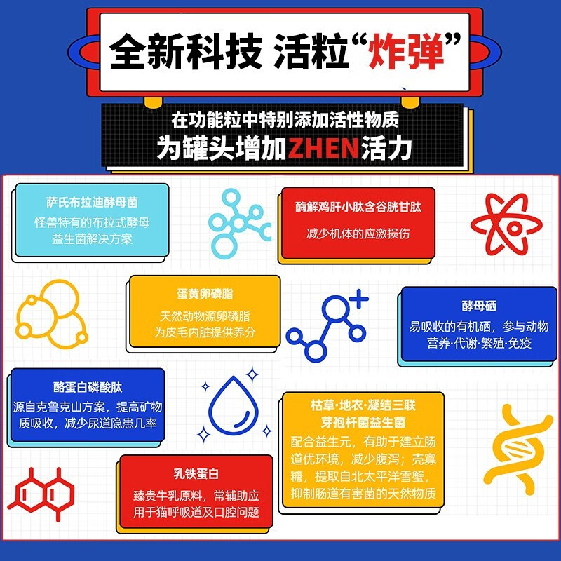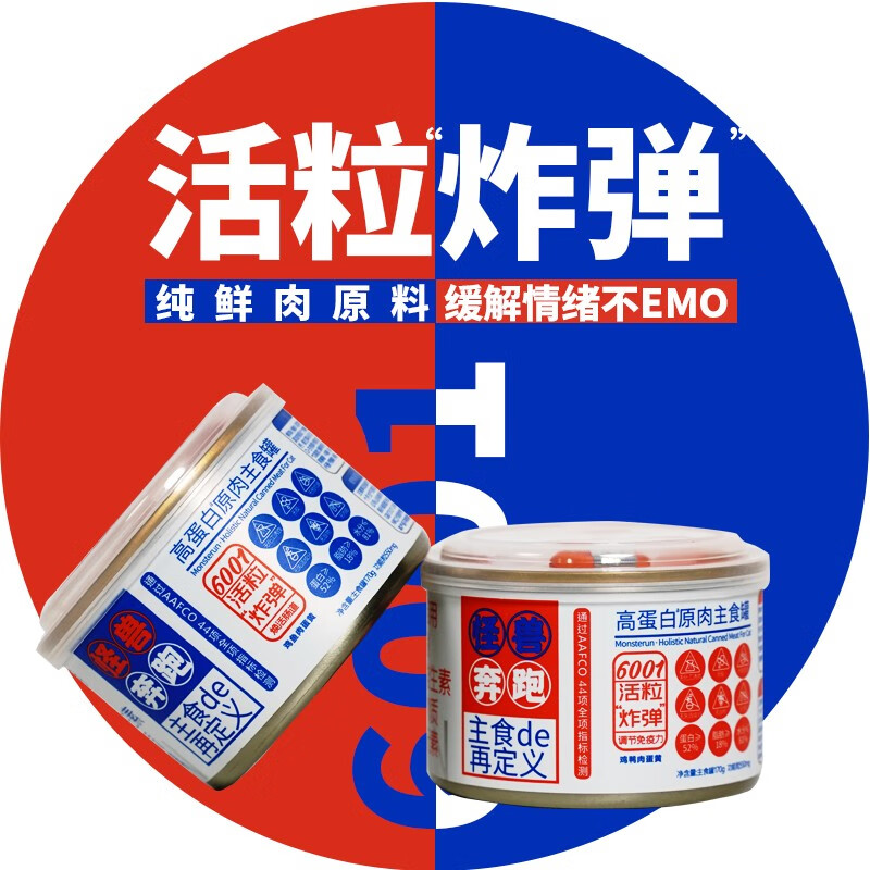 怪兽奔跑6001活粒“炸弹”猫全价成猫幼猫主食罐湿粮无谷猫粮 鸡鱼肉蛋黄170g*2罐 鸡鸭肉蛋黄170g*2罐