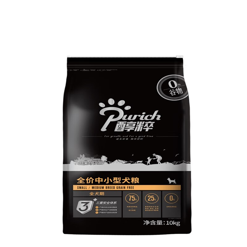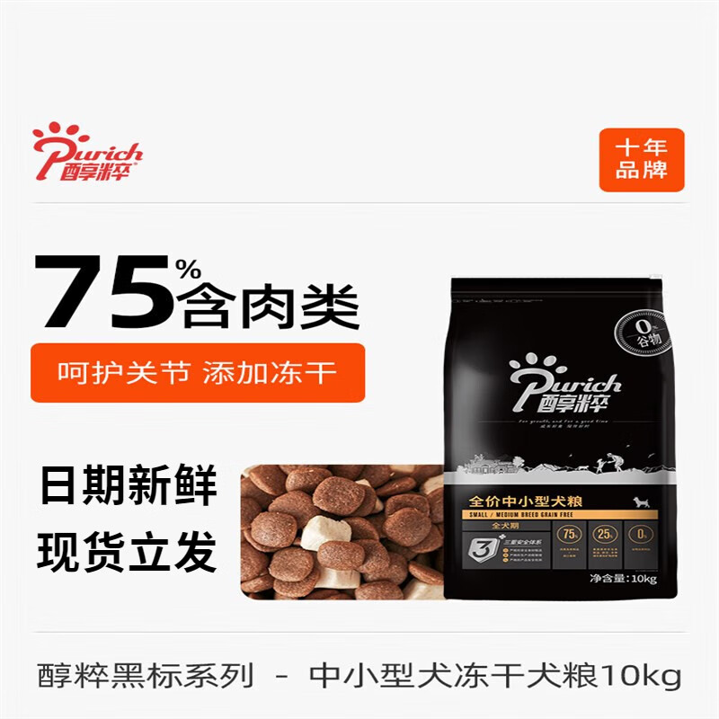 醇粹(Purich)黑标冻干成犬幼犬中小型狗粮十大品牌纯粹10kg 中小型犬粮-添加鸡肉冻干 10kg/袋