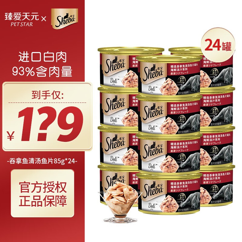 希宝(Sheba)猫罐头猫湿粮sheba猫零食宠物零食罐头 吞拿鱼清汤鱼片 海鲜汤汁85g*24
