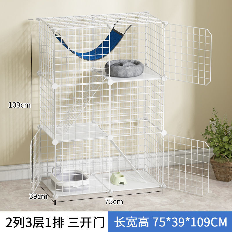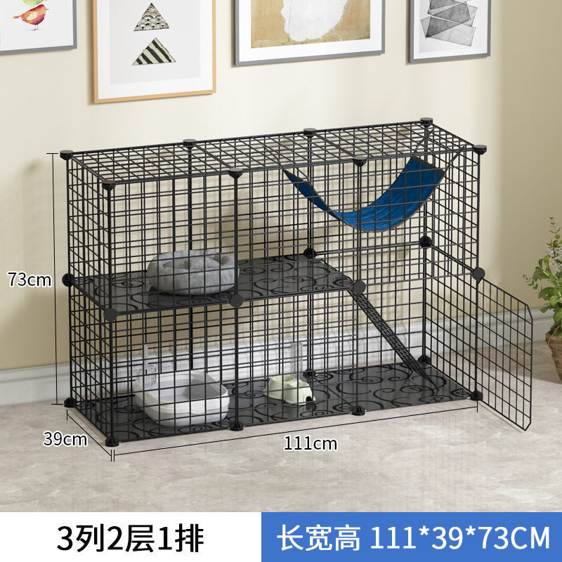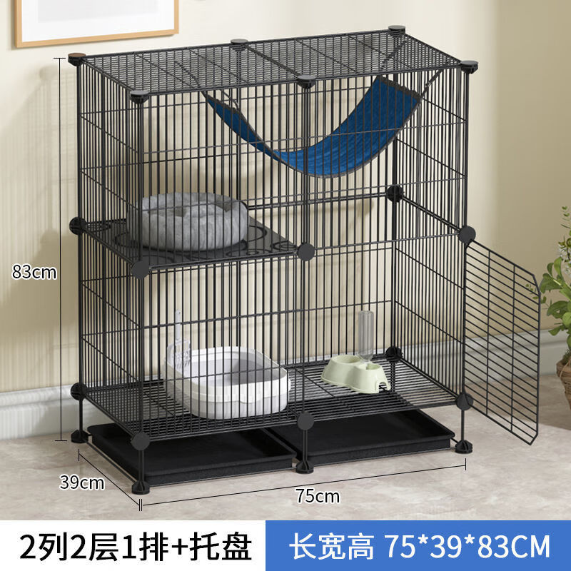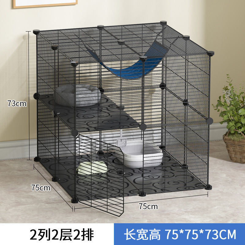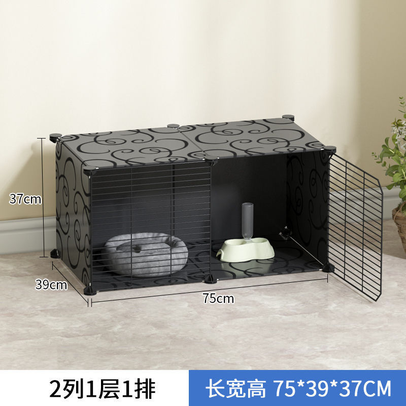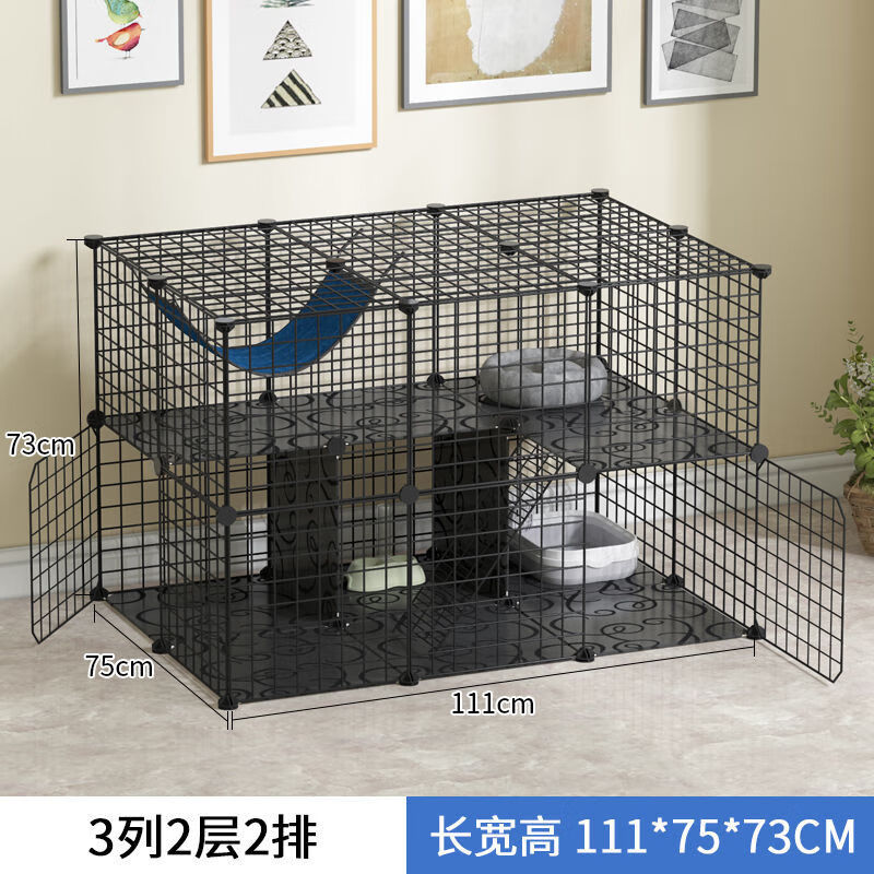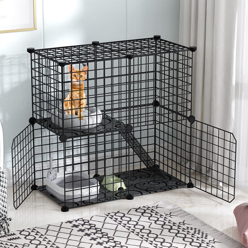 皆百福 猫笼子猫咪别墅室内猫屋家用宠物围栏可放猫砂盆中小型猫舍猫窝 2格封闭(加密款)黑色 常规款【带防滑垫 紧固扣 工具】