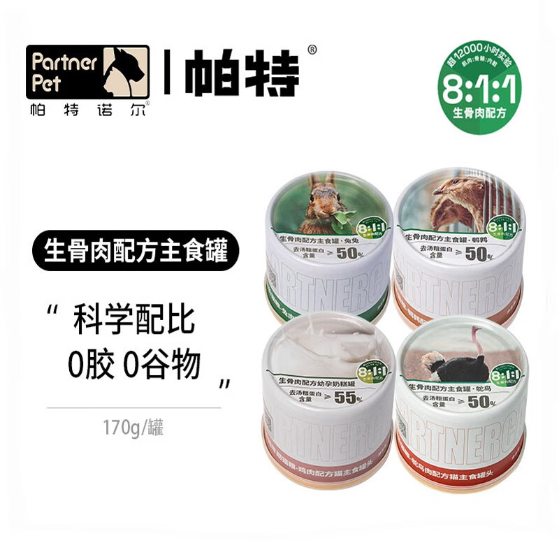 心粮 猫罐头主食猫奶糕生骨肉湿粮猫粮猫零食 鸵鸟配方170g*4罐