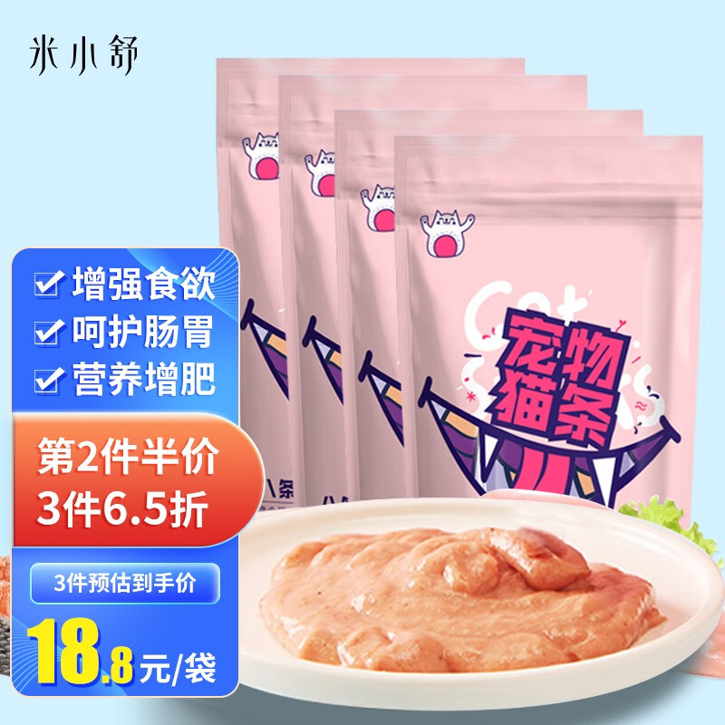 米小舒猫条猫零食猫咪鸡肉鱼肉 猫湿粮猫罐头 成猫幼猫通用孕猫营养食品补钙 四种口味袋装 【金枪鱼 鲔鱼口味猫条】一袋15g*8支