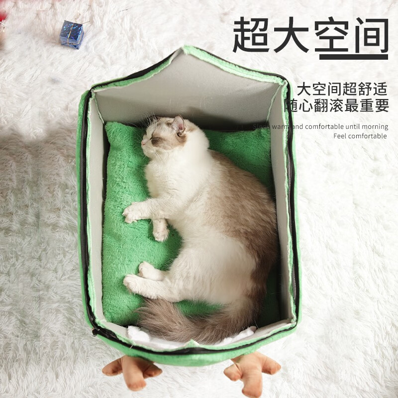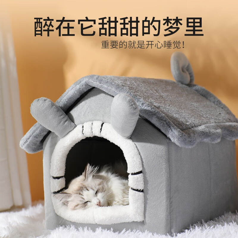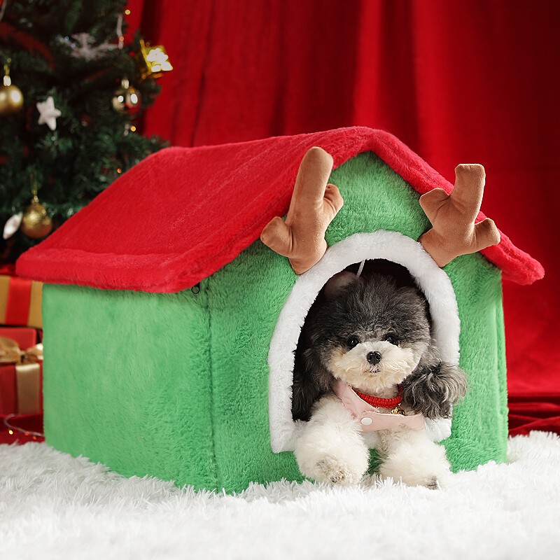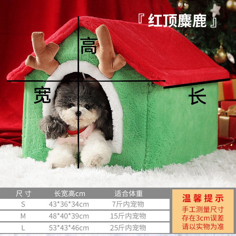 同心惢猫窝猫房子 圣诞节狗窝冬季保暖小型犬泰迪可拆洗狗屋宠物窝 圣诞款M号【48x40X39cm】