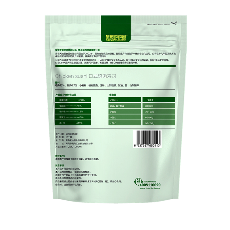 多格萨萨蜜 宠物食品狗零食 日式料理鸡肉鳕鱼寿司400g 训犬奖励磨牙肉干