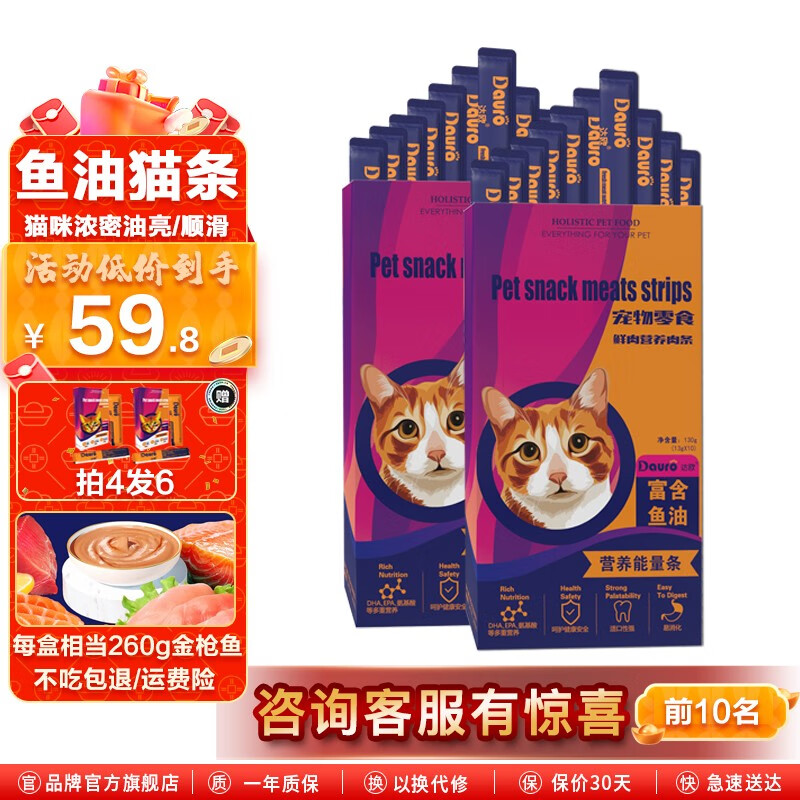 达欧(Dauro)高纯度鱼油猫条猫湿粮 成猫幼猫通用猫咪零食 鱼油猫条13g*60支【95%用户选】